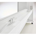 ●天板:木製・メラミン化粧板(ホワイト)・ABS樹脂エッジ・20mm厚・配線用グロメット付 ● 本体:スチール・粉体塗装(ホワイト)・配線用グロメット2個付・コード配線ボックス・コードホール付 ● 脚部:アジャスター仕様・樹脂カバー・配線用グロメット付 |