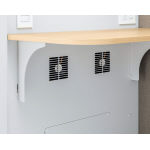 【換気ファン(天板下)】ブース内の空気を約23秒(最大風量・理論値)で循環させ、常に快適な状態を保ちます。ダイヤルを回して風量を調節できます。※換気速度は風量によって変わります。