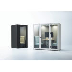 天井高が低い空間にも設置できるコンパクトなドア付ワーキングブース。周囲を気にせずに集中作業やWeb会議などのソロワークに対応します。 |