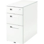 ●仕様:引出し3段 ●上段引出し内寸法:W222×D430×H98mm ●中段引出し内寸法:W222×D430×H165mm ●下段引出し内寸法:W222×D540×H265mm ●付属品:ペントレー1個・仕切板1枚 ●天板・本体:スチール・粉体塗装(ホワイト/ブラック) ●取手:ABS樹脂 ●引出し:ラッチ機能付・オールロック錠(施解錠表示・内筒交換仕様)・下段引出しは転倒防止機構付・ストッパー付低床自在キャスタ−仕様 |