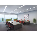 シンプルなデザイン、充実の機能。パネル脚のシンプルなデザインとデスク&パネルの多彩なカラーバリエーションが、空間に合わせたスタイリッシュなオフィスづくりを可能にします。豊富なオプションやスマートな配線処理ができる開閉式配線カバーなど、機能性も充実したデスクです。 |