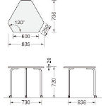 ●天板:木製・メラミン化粧板・ABS樹脂エッジ・20mm厚 ●脚部:φ31.8mmスチールパイプ・粉体塗装(ベージュ・ブラック) ●キャスター:φ40mmナイロン双輪(2個ストッパー付…長方形・六角形(大)/3個ストッパー付…六角形(小)) |