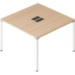 ●エンド脚:スチールパイプ・メラミン焼付塗装・アジャスター付●天板:スチール・メラミン化粧板・26mm厚・ABS樹脂エッジ ●脚受部:アルミダイキャスト・メラミン焼付塗装(ブラック) ●配線ボックス:スチール・メラミン焼付塗装(ブラック) ●配線ボックスカバー:ABS樹脂 ●配線フック付 |