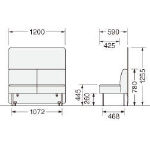 ●2人掛●座高:430mm ●張材:布張り(ポリエステル) ●クッション:ウレタンフォーム ●ソファー・パネル脚部:スチールパイプ・メラミン焼付塗装(ブラック)・アジャスター付 ●天板:木製・メラミン化粧板・ABS樹脂エッジ・20mm厚 ●テーブル脚部:φ50.8mmスチールパイプ・スチールベース・メラミン焼付塗装(ブラック) |