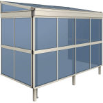 ソラリア テラス屋根 柱標準タイプ・フラット型 屋根ふき材:アースブルー 屋根妻パネル 前面・側面パネル 2段タイプ 前面・前面パネルすき間隠し H2 |