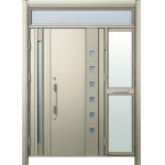 ドアリモD30 断熱ドア F06H H2 ランマ付袖付親子(中桟付・ポスト付) 外額縁80 角型ストレート シルバー 子扉:K11N |