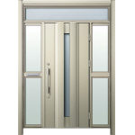ドアリモD30 断熱ドア C04N H2 ランマ付両袖FIX(中桟付・ポスト付) 外額縁80 丸型ストレート シルバー |