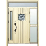 ドアリモD30 断熱ドア N13N JJ ランマ付袖付親子(中桟付・ポスト付) 外額縁80 ロートアイアン調 ブラック 子扉:K06N |