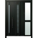 ドアリモD30 断熱ドア C11N K5 袖付親子(中桟付・ポスト付) 外額縁80 丸型ストレート ブラック 子扉:K08N |