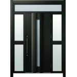 ドアリモD30 断熱ドア C04N K5 ランマ付両袖FIX(中桟付) 外額縁80 丸型ストレート ブラック |