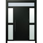 ドアリモD30 断熱ドア C10N K5 ランマ付両袖FIX(中桟付) 外額縁80 丸型ストレート ブラック |