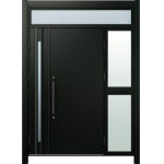 ドアリモD30 断熱ドア C10N K5 ランマ付袖付親子(中桟付・ポスト付) 外額縁80 丸型ストレート ブラック 子扉:K08N |