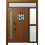 ドアリモD30 断熱ドア N13N KE ランマ付袖付親子(中桟付) 外額縁80 ロートアイアン調 ブラック 子扉:K06N |