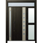 ドアリモD30 断熱ドア F06H W6 ランマ付袖付親子(中桟付・ポスト付) 外額縁80 角型ストレート ブラック 子扉:K11N |