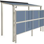 テラス屋根 柱標準 標準柱 F型 600N 2間×6尺 H2色 屋根ふき材:ポリカーボネート板(アースブルー色)前面パネル付き(2段・アースブルー色) |