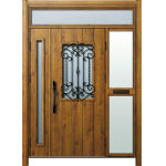 ドアリモD30 断熱ドア E11N BE ランマ付袖付親子(中桟付・ポスト付) 外額縁80 ピタットキー洋風カーブ ブラック 子扉:K06N |