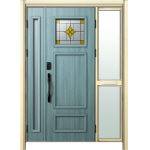 ドアリモD30 断熱ドア E02N BJ 袖付親子(中桟付・ポスト付) 外額縁80 顔認証キー洋風カーブ ブラック 子扉:K06N |