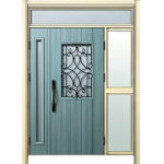ドアリモD30 断熱ドア E10N BJ ランマ付袖付親子(中桟付) 外額縁80 ピタットキー洋風カーブ ブラック 子扉:K06N |