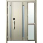 ドアリモD30 断熱ドア C09N H2 袖付親子(中桟付・ポスト付) 外額縁80 顔認証キーストレート シルバー 子扉:K08N |