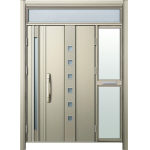ドアリモD30 断熱ドア F05H H2 ランマ付袖付親子(中桟付・ポスト付) 外額縁80 ピタットキーストレート シルバー 子扉:K11N |