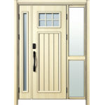 ドアリモD30 断熱ドア E01N JJ 袖付親子(中桟付) 外額縁80 顔認証キー洋風カーブ ブラック 子扉:K06N |