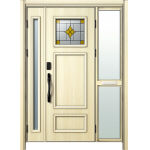 ドアリモD30 断熱ドア E02N JJ 袖付親子(中桟付・ポスト付) 外額縁80 顔認証キー洋風カーブ ブラック 子扉:K06N |