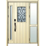 ドアリモD30 断熱ドア E10N JJ 袖付親子(中桟付・ポスト付) 外額縁80 顔認証キー洋風カーブ ブラック 子扉:K06N |