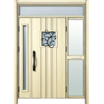 ドアリモD30 断熱ドア N13N JJ ランマ付袖付親子(中桟付・ポスト付) 外額縁80 ピタットキー洋風カーブ ブラック 子扉:K06N |