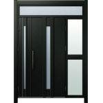 ドアリモD30 断熱ドア C07N K5 ランマ付袖付親子(中桟付・ポスト付) 外額縁80 ピタットキーストレート ブラック 子扉:K08N |
