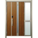 ドアリモD30 断熱ドア F03N KE 袖付親子(中桟付・ポスト付) 外額縁80 顔認証キーストレート シルバー 子扉:K01N |