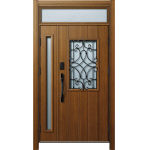 ドアリモD30 断熱ドア E10N KE ランマ付親子 外額縁80 顔認証キー洋風カーブ ブラック 子扉:K06N |