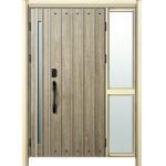 ドアリモD30 断熱ドア N09N XP 袖付親子(中桟付) 外額縁80 顔認証キー洋風カーブ ブラック 子扉:K08N |