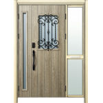 ドアリモD30 断熱ドア E11N XP 袖付親子(中桟付・ポスト付) 外額縁80 顔認証キー洋風カーブ ブラック 子扉:K06N |