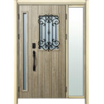 ドアリモD30 断熱ドア E11N XP 袖付親子 外額縁80 顔認証キー洋風カーブ ブラック 子扉:K06N |