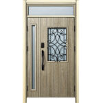 ドアリモD30 断熱ドア E10N XP ランマ付親子 外額縁80 顔認証キー洋風カーブ ブラック 子扉:K06N |