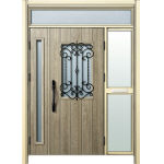 ドアリモD30 断熱ドア E11N XP ランマ付袖付親子(中桟付・ポスト付) 外額縁80 ピタットキー洋風カーブ ブラック 子扉:K06N |