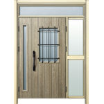 ドアリモD30 断熱ドア E12N XP ランマ付袖付親子(中桟付) 外額縁80 ピタットキー洋風カーブ ブラック 子扉:K06N |