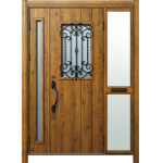 ドアリモD30 断熱ドア E11N BE 袖付親子(中桟付・ポスト付) 外額縁80 ロートアイアン調 ブラック 子扉:K06N |