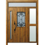 ドアリモD30 断熱ドア E11N BE ランマ付袖付親子(中桟付) 外額縁80 ロートアイアン調 ブラック 子扉:K06N |