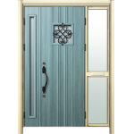 ドアリモD30 断熱ドア N12N BJ 袖付親子(中桟付・ポスト付) 外額縁80 ロートアイアン調 ブラック 子扉:K06N |