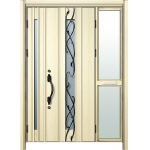 ドアリモD30 断熱ドア E09N JJ 袖付親子(中桟付・ポスト付) 外額縁80 ロートアイアン調 ブラック 子扉:K08N |