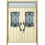 ドアリモD30 断熱ドア E11N JJ ランマ付両開き 外額縁80 ロートアイアン調 ブラック |