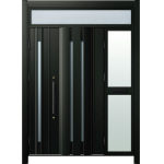 ドアリモD30 断熱ドア C05N K5 ランマ付袖付親子(中桟付・ポスト付) 外額縁80 丸型ストレート ブラック 子扉:K08N |