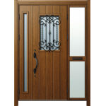 ドアリモD30 断熱ドア E11N KE 袖付親子(中桟付・ポスト付) 外額縁80 ロートアイアン調 ブラック 子扉:K06N |