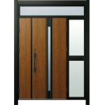 ドアリモD30 断熱ドア F03N KE※B7枠 ランマ付袖付親子(中桟付・ポスト付) 外額縁80 丸型ストレート ブラック 子扉:K01N |