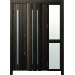 ドアリモD30 断熱ドア C05N W6 袖付親子(中桟付・ポスト付) 外額縁80 丸型ストレート ブラック 子扉:K08N |