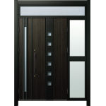 ドアリモD30 断熱ドア F05H W6※B7枠 ランマ付袖付親子(中桟付) 外額縁80 角型ストレート ブラック 子扉:K11N |