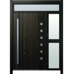 ドアリモD30 断熱ドア F06H W6※B7枠 ランマ付袖付親子(中桟付) 外額縁80 角型ストレート ブラック 子扉:K11N |