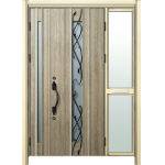 ドアリモD30 断熱ドア E09N XP 袖付親子(中桟付・ポスト付) 外額縁80 ロートアイアン調 ブラック 子扉:K08N |