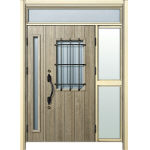 ドアリモD30 断熱ドア E12N XP ランマ付袖付親子(中桟付) 外額縁80 ロートアイアン調 ブラック 子扉:K06N |